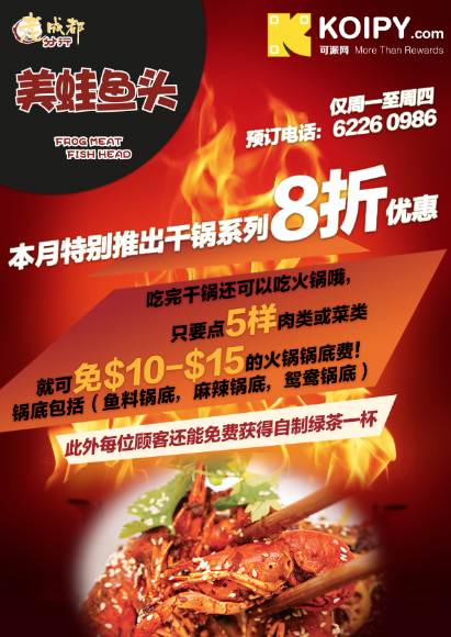 说起《我是歌手》黄妈都爱去的美蛙鱼头,吃过的小伙伴一定对下图不陌生了吧!这家由新加坡人气川菜馆【老成都川菜】开设的火锅姐妹店,自开业以来就以鲜、香、嫩、美的食材和地道的四川秘制香辣锅底在吃货圈赢得了不错的口碑!现在,她家除了全新的冷气系统(吃火锅也不怕热啦),还有全新吃法哦!